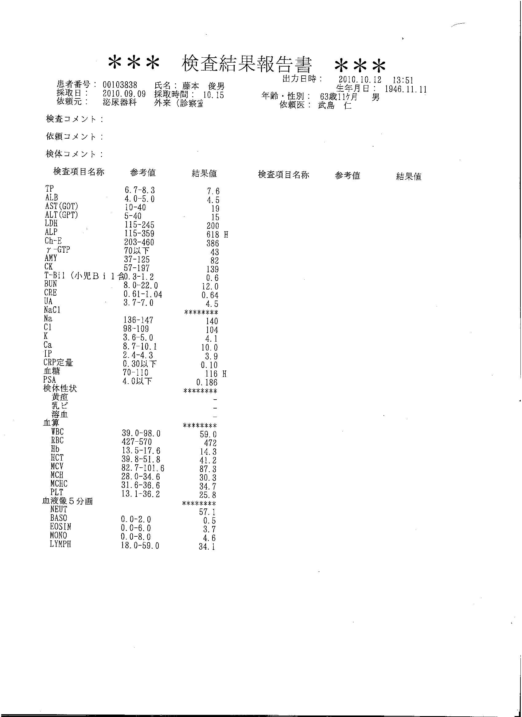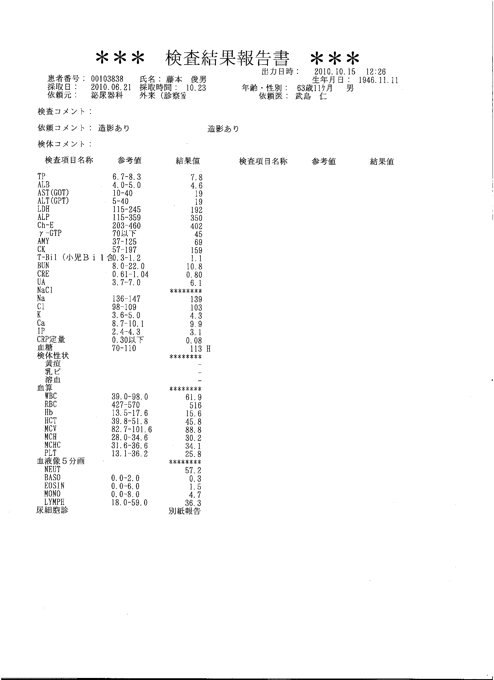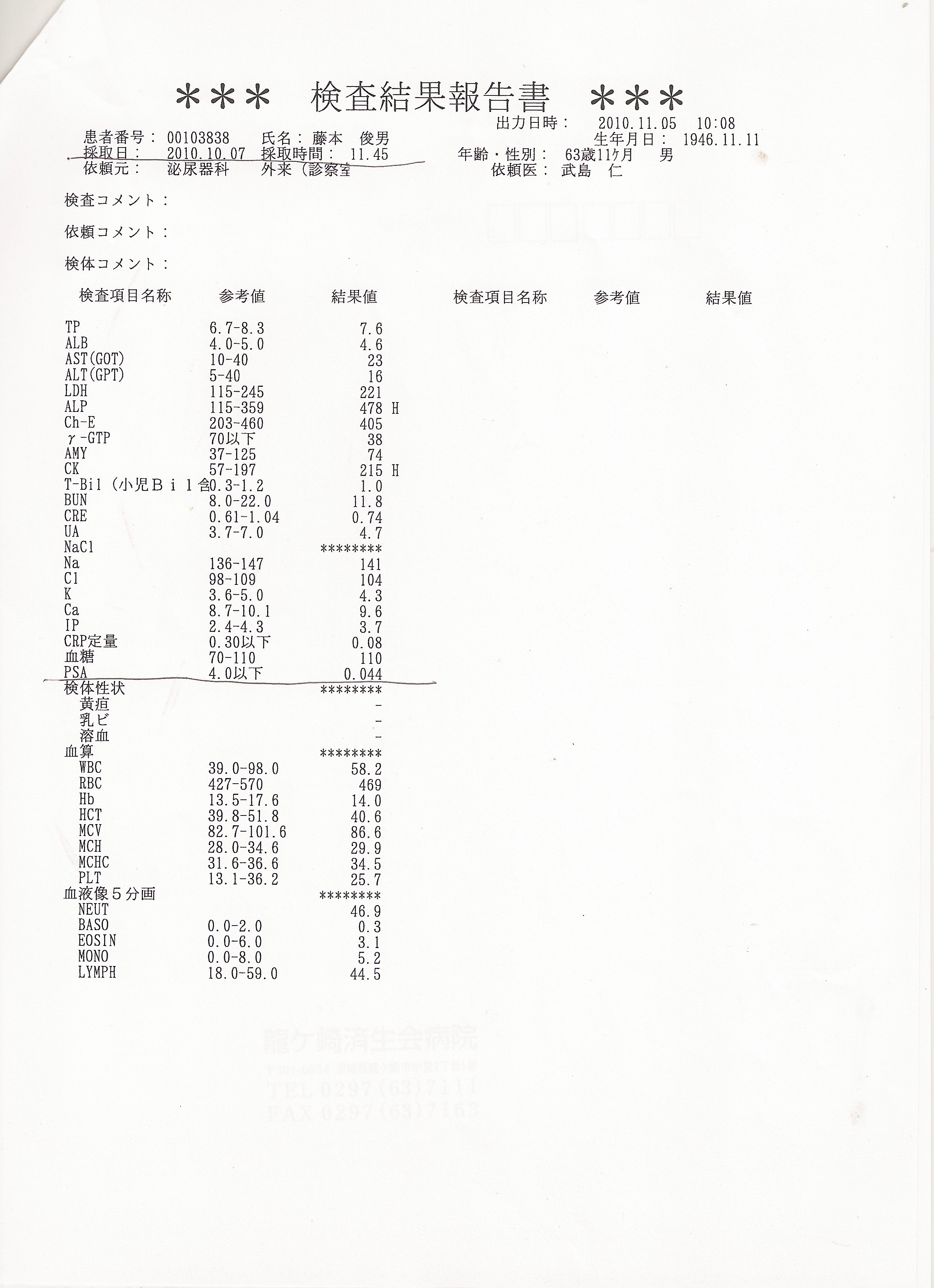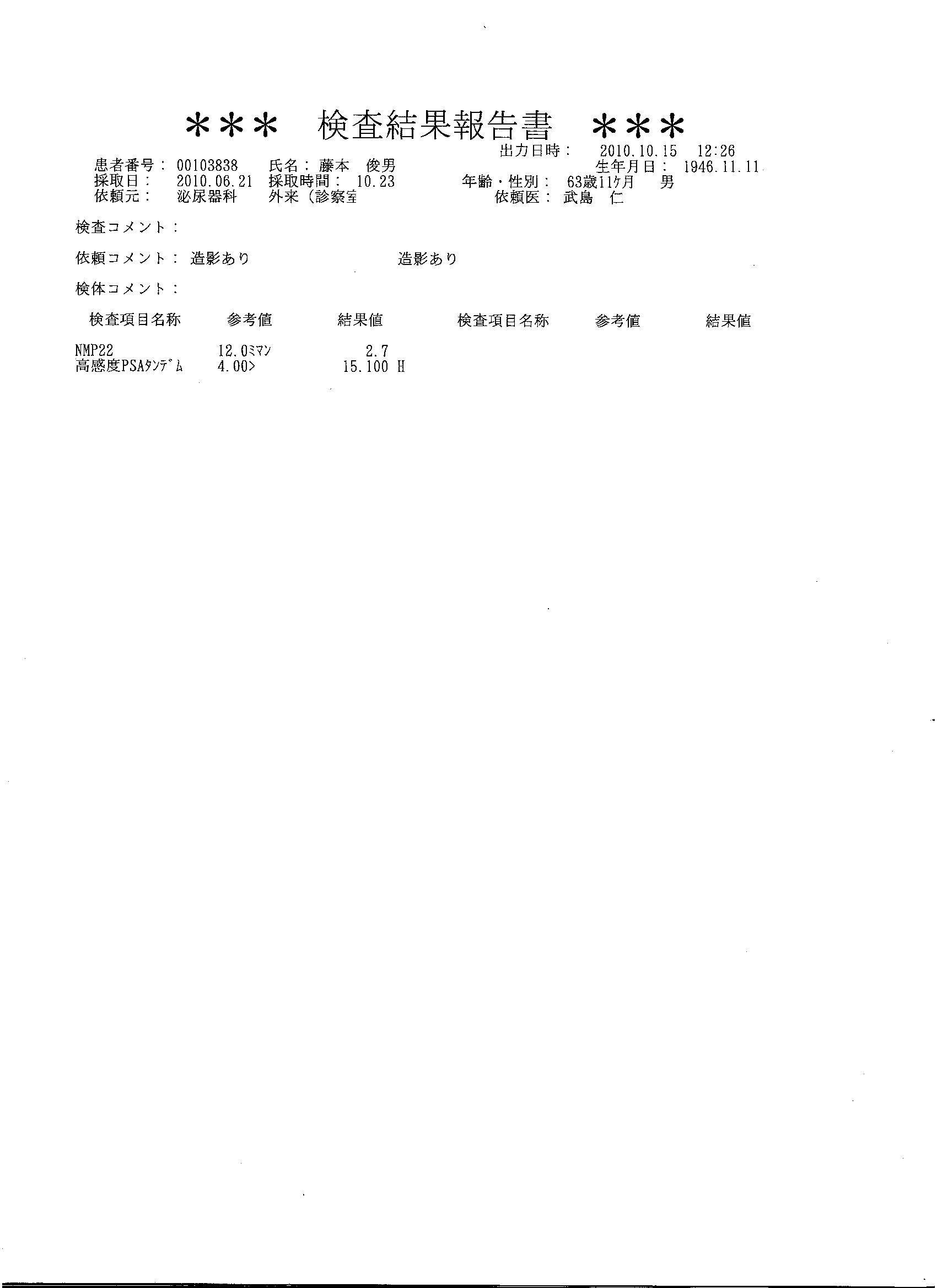 藤元さま検査結果