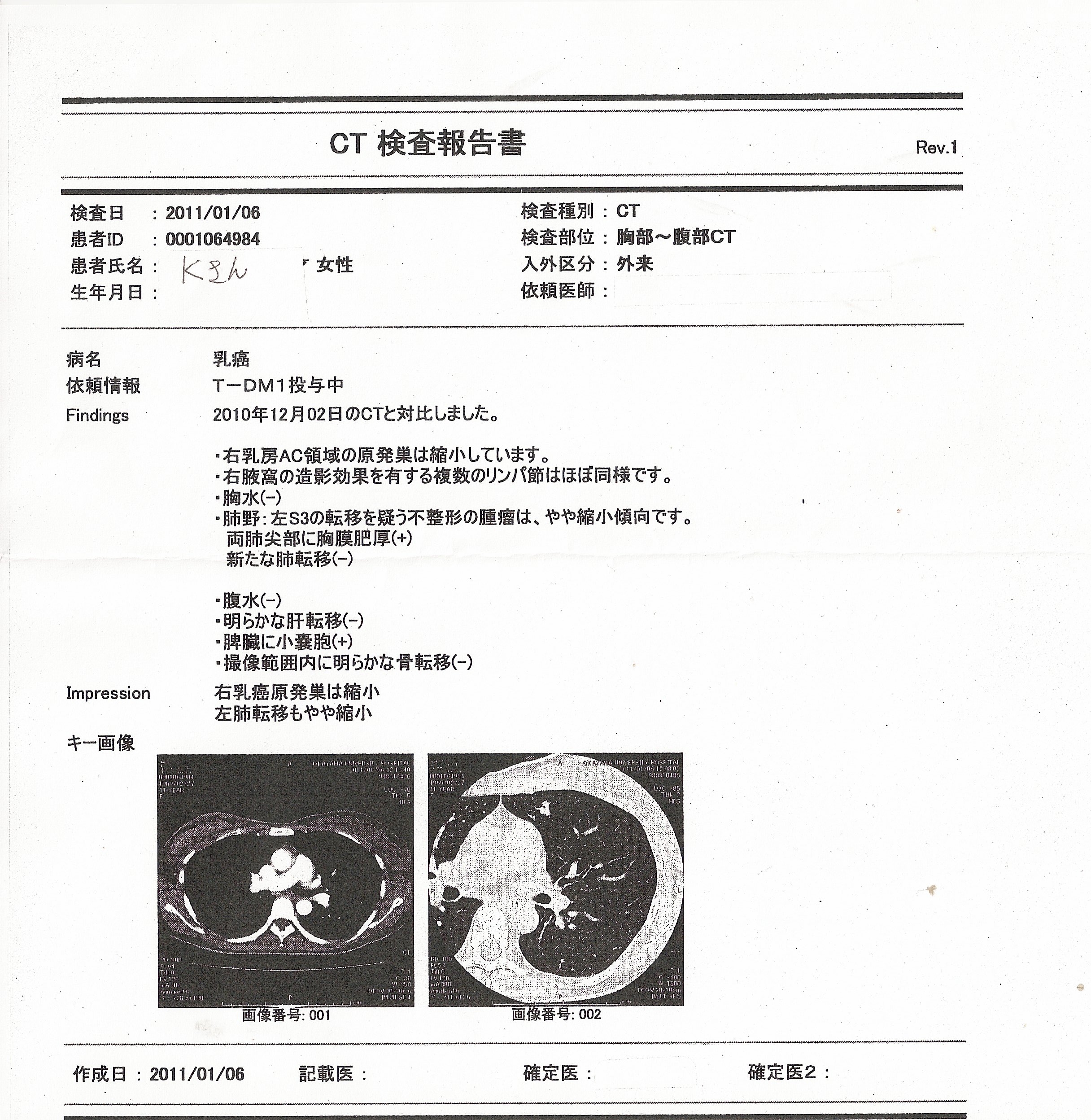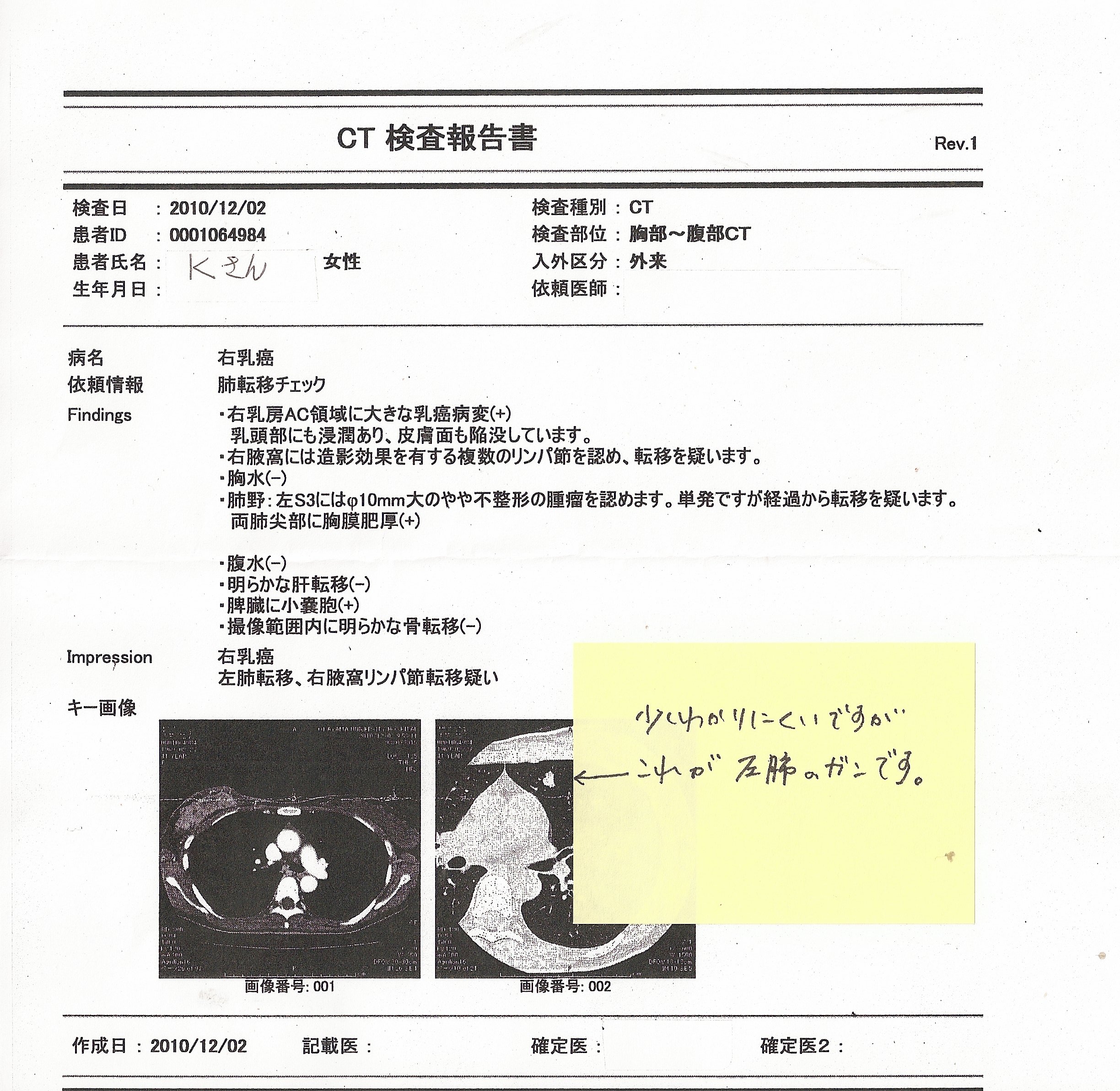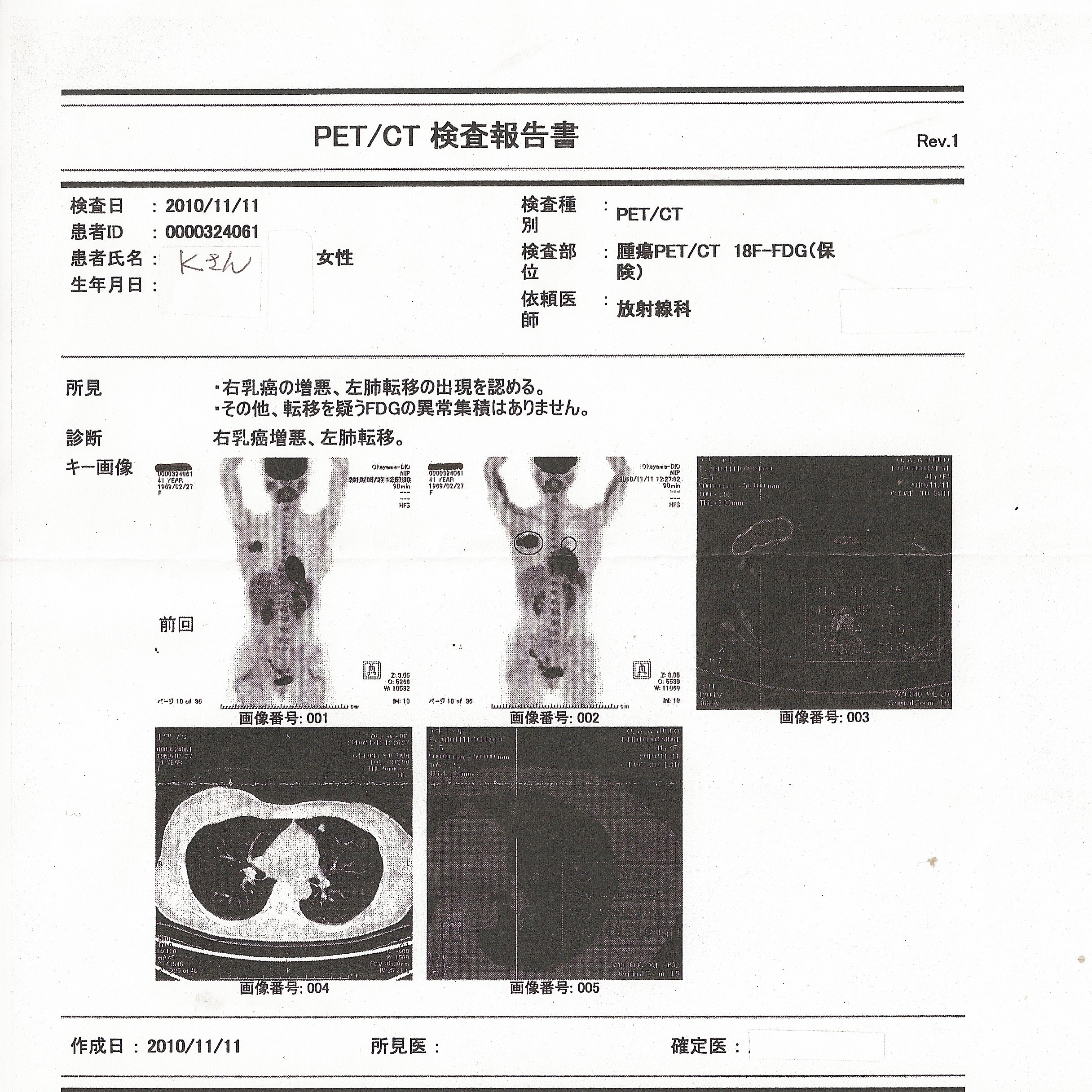 乳癌患者検査結果